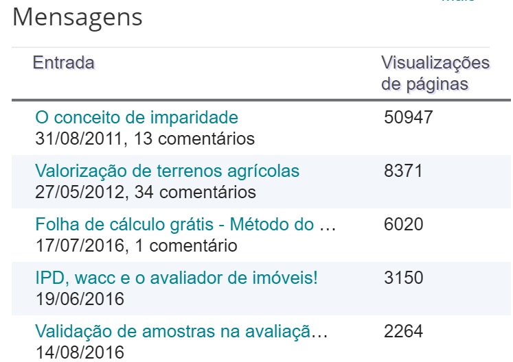 O primeiro número do blogue avaliarpatrimonio.blogspot.pt nasceu em agosto do ano de 2011 e, desde esta altura, temos escrito ininterruptamente, em cada domingo. São quase oito anos de blogue, 369 artigos de alguma forma relacionados com a avaliação de imóveis e, com muito orgulho, quase 455.000 visualizações.