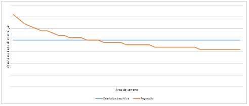 Verificamos que através da inferência estatística, à medida que a área de terreno aumenta, o valor do imóvel por m2 de área bruta de construção diminui.